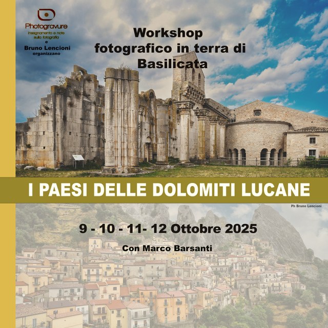 ESAURITI I POSTI DISPONIBILI La Basilicata fra spazi urbani e natura – 09-10-11-12 ottobre 2025 Proseguono le nostre esperienze di viaggio e fotografia in terra di Basilicata. In questo caso saranno le straordinarie Dolomiti Lucane a costituire il nostro nuovo palcoscenico.Ancora una volta sarete…