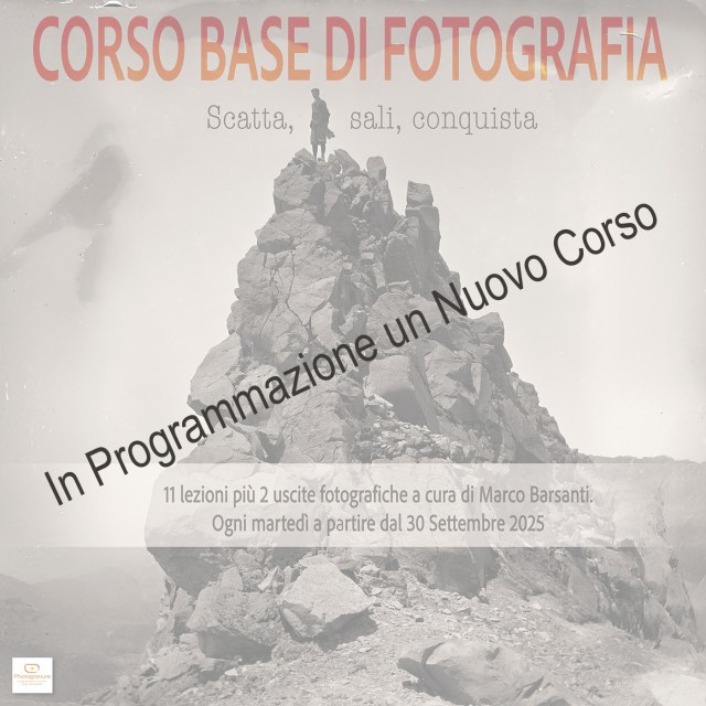 NUOVO CORSO BASE DI FOTOGRAFIA da martedì 30 settembre 2025 Ogni martedì dalle 21:00 alle 22:45 Il corso di fotografia base (per un totale di 13 incontri è pensato per chi desidera avvicinarsi alla teoria e alla pratica della fotografia. Gli argomenti saranno affrontati…