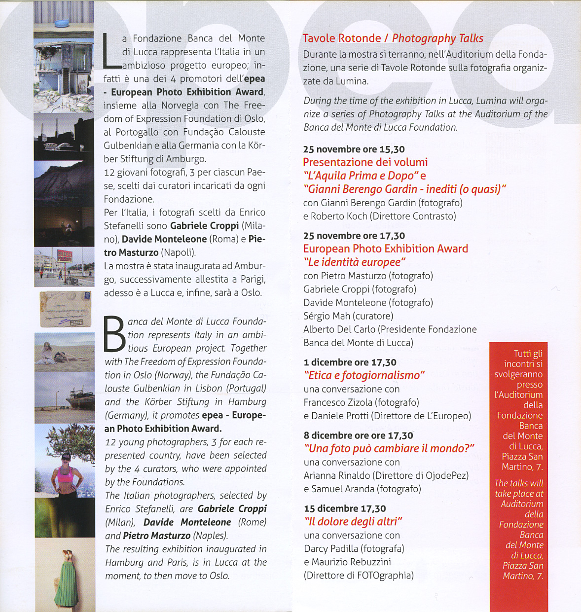 Organizzo anche corsi fotografici di Livello Avanzato fra cui un laboratorio per La realizzazione di un Progetto Fotografico e un Corso di Storia della Fotografia.