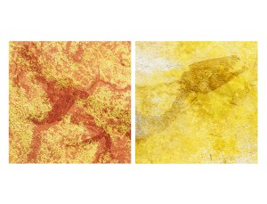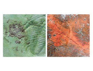 Accostando diverse immagini, in diversi colori, ho creato degli sfondi sui quali successivamente ho sovrapposto delle immagini di fossili, simbolo di una storia più antica